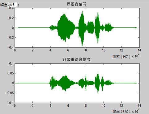 (1)利用GoldWave錄音軟件錄制,保存格式為.wav后綴,利用MATLAB軟件中的wavread()函數(shù)讀取錄制好的語音信號,并繪制出該語音信號的時域與頻譜波形圖[4]。