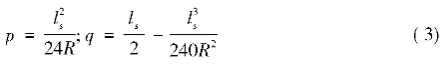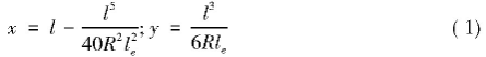 式中:R為曲線半徑;l、ls為緩和曲線長和緩和曲線全長;x、y為緩和曲線直角坐標緩和曲線主要元素計算式: