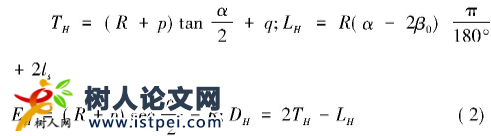 式中:α、R、ls為該JD的轉角、曲線半徑及緩和曲線長;TH、LH、EH、DH分別為設有緩和曲線的圓曲線切線長、曲線長、外距和切曲差;p和q為緩和曲線內移值與切線增值,按下式計算: